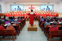 早晨八点,礼拜准时开始。会众起立齐声颂唱《快乐日歌》,并共同宣读《使徒信经》。二十余位诗班成员身着统一的白色诗班服,献唱《同心掰饼》。随后,吴建刚牧师引用哥林多后书5章17节与罗马书6章3至4节,以“新造的人”为题证道。