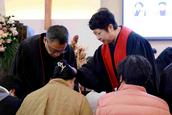 证道结束后,庄重的圣洗礼正式开始。范明杰牧师为圣洗礼献上祷告,全体预备受洗的肢体侍立。苏醒牧师逐一郑重询问其是否真心接受基督并愿受洗,众人以清晰坚定的“是”回应。范牧师随后介绍了四位本堂施洗牧师。在庄严肃穆的氛围中,67位预备受洗的肢体在同工引导下,有序跪于圣台十字架前,接受牧师奉圣父、圣子、圣灵之名的施洗。会场上顿时掌声雷动,众人将荣耀归于三一真神,共同欢庆新肢体“回家”的喜悦。